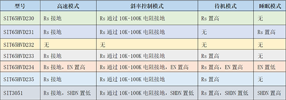 表2:芯力特3.3V CAN收发器系列芯片模式切换