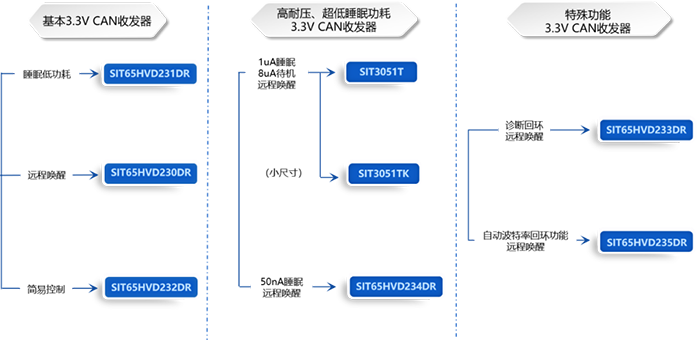 「芯力特」3.3V单电源供电CAN收发器系列芯片—— SIT65HVD23x,SIT3051