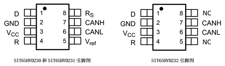芯力特3.3V单电源CAN收发器主要有SIT65HVD23x系列(SIT65HVD230-235)和SIT3051系列;如下图1: